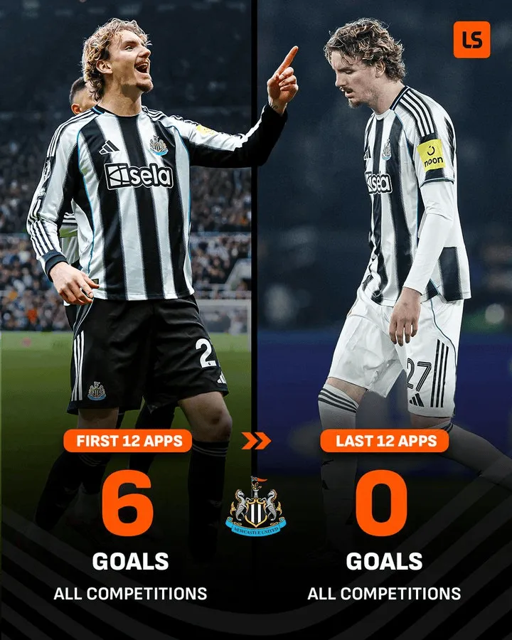 虎扑02月06日讯 根据LiveScore的统计,沃尔特马德在加盟纽卡斯尔联的前12场各项赛事中打进了6个球,但是在最近12次出场中,沃尔特马德颗粒无收。