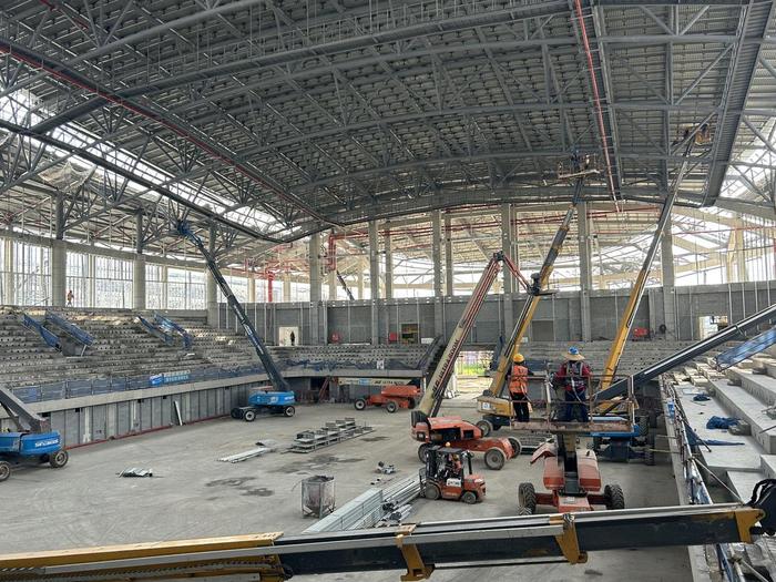 2024年2月24日,兰山区体育中心正式动工。仅用时半年,主体结构就已完成施工。全速推进背后,是数百位建设者们夜以继日的辛勤付出和团队高效协作的成果。
