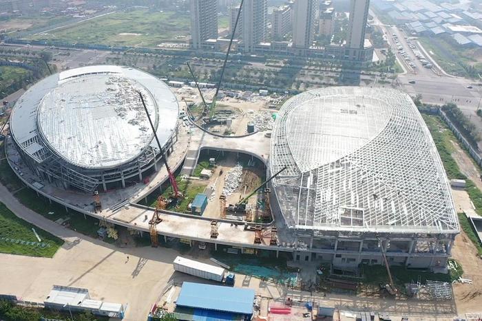 “体育馆弧形穹顶是建设过程中的最大挑战。”郑成波说,这个穹顶由管桁架为主要形式的钢结构做支撑,单品桁架最重可达51.8吨,钢结构总重量超千吨,在长达70米的跨度下,施工难度骤然升级。自去年8月起,团队就多次组织现场考察、专家论证,用了近半年时间最终设计出一份钢结构专项施工方案,确保穹顶建设顺利推进。